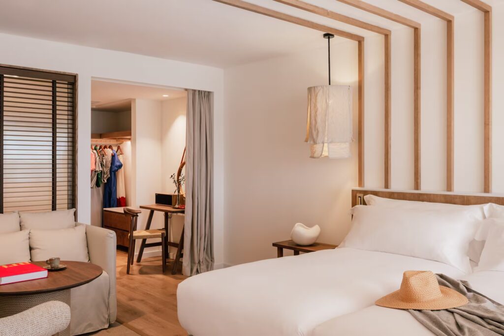 En la Costa del Sol, el Hotel Me Marbella, de la cadena Meliá, refleja un estilo contemporáneo que combina la energía mediterránea con un ambiente sofisticado y relajado. Sus habitaciones transmiten calma y luminosidad gracias a un diseño que apuesta por la pureza de las líneas, los materiales naturales y los tonos suaves.