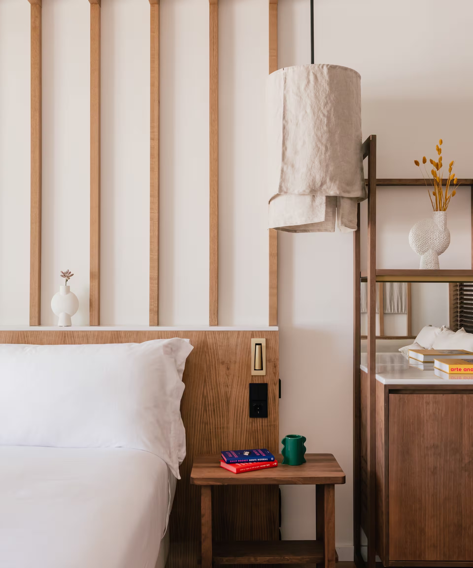 En este proyecto, Decorluc ha creado lámparas hechas a mano que se integran de manera orgánica en el interiorismo. Con pantallas de tejidos naturales y una presencia discreta, estas luminarias envuelven la estancia con una luz cálida y acogedora, reforzando la sensación de bienestar. Más que iluminar, aportan textura, serenidad y un detalle artesanal que realza la identidad de cada habitación.