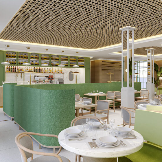 El proyecto ha incluido la creación de una señalización personalizada que se integra perfectamente con la estética elegante y moderna del hotel, asegurando que cada detalle refleje el estilo distintivo del Alcázar Soller. Al mismo tiempo, Decorluc ha contribuido al diseño e instalación de parte de la iluminación del restaurante, ofreciendo soluciones lumínicas que realzan el ambiente acogedor y sofisticado de este espacio gastronómico.