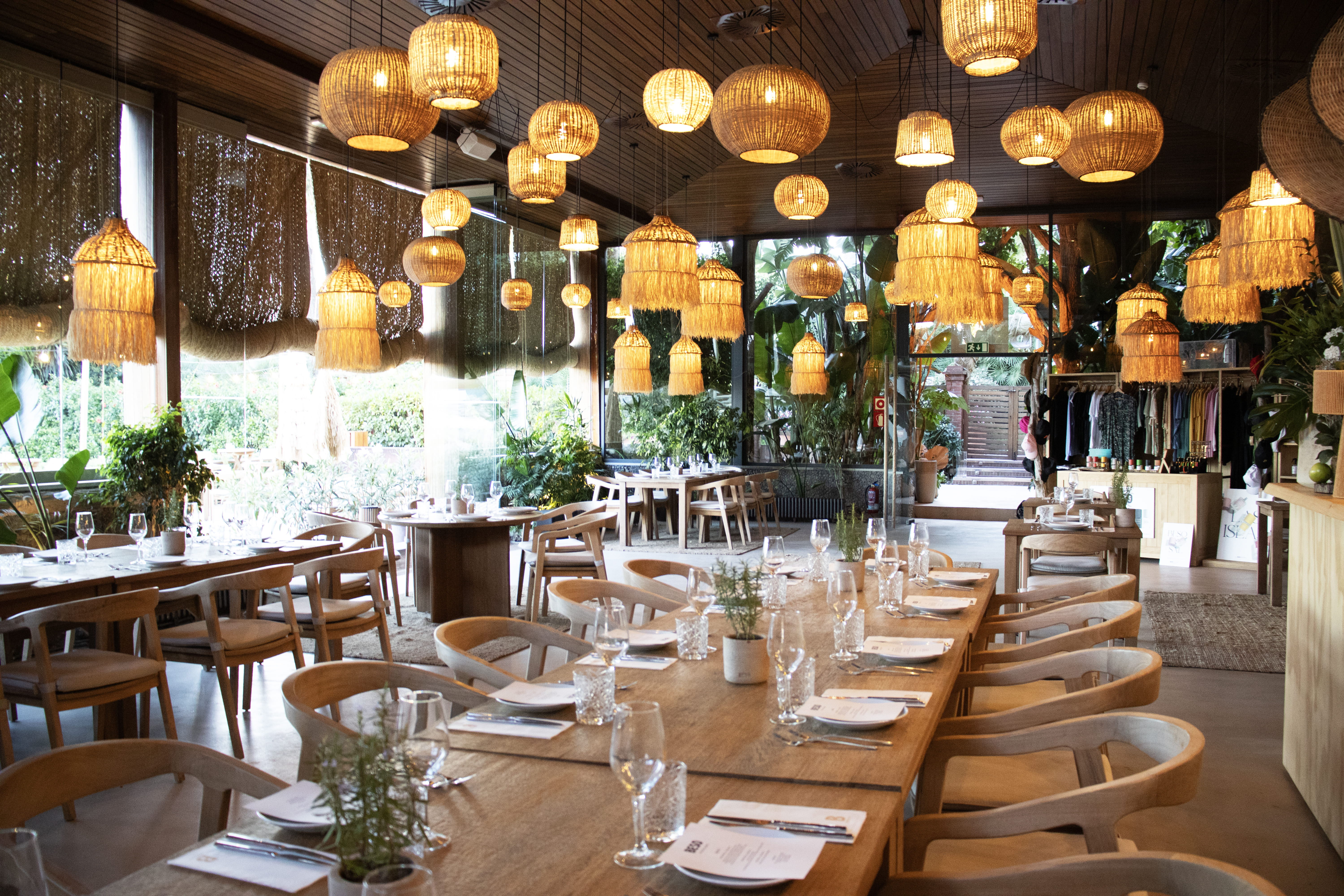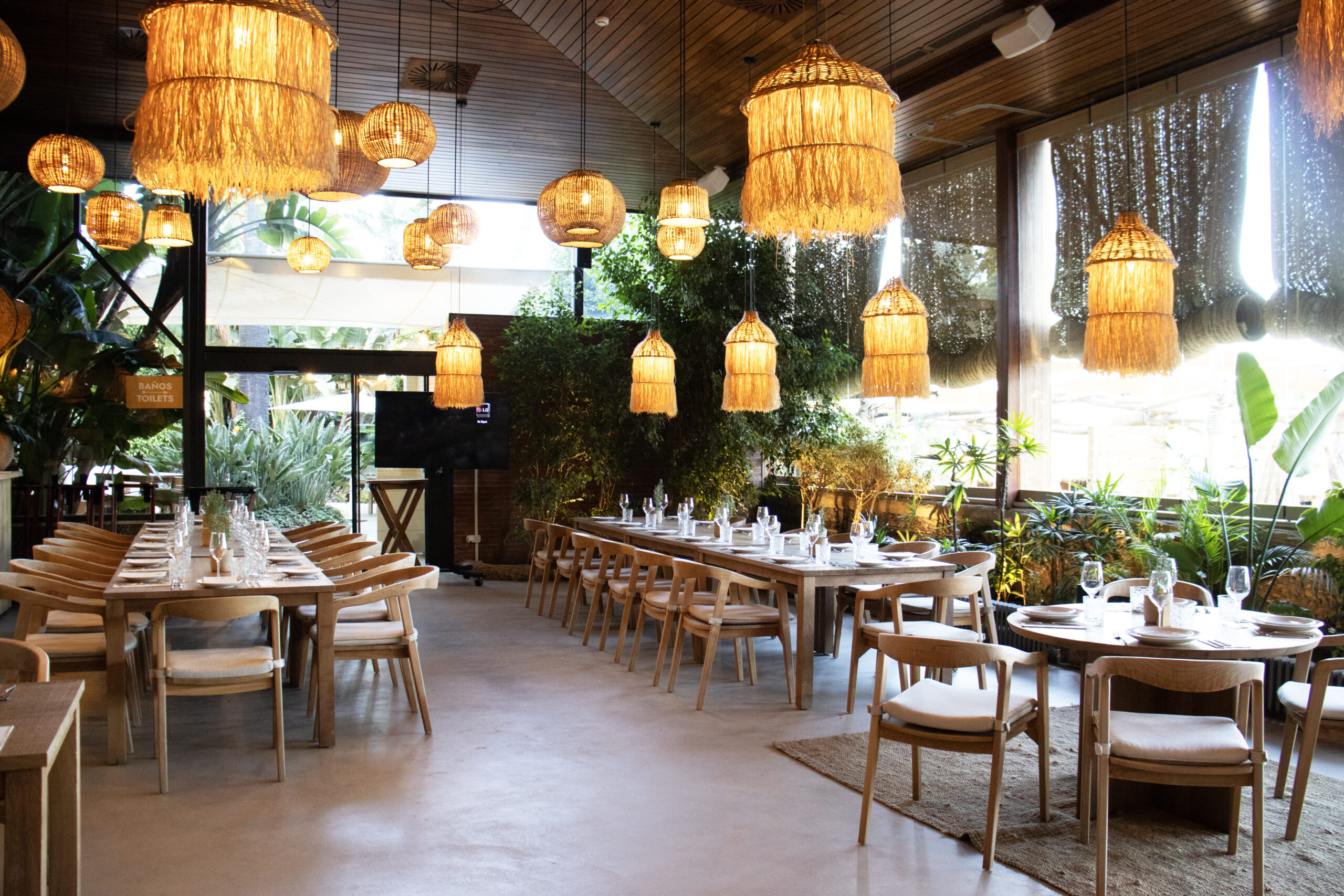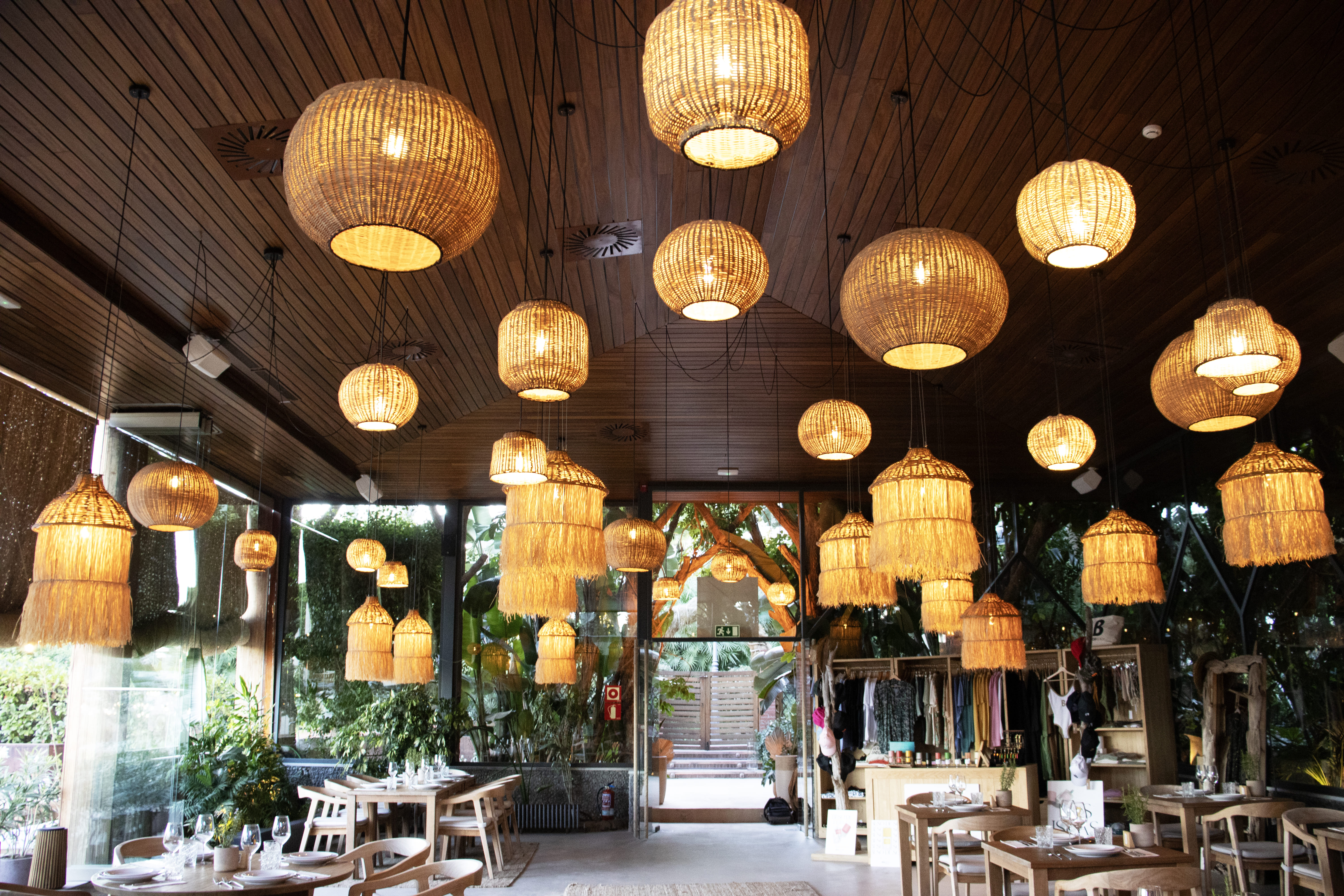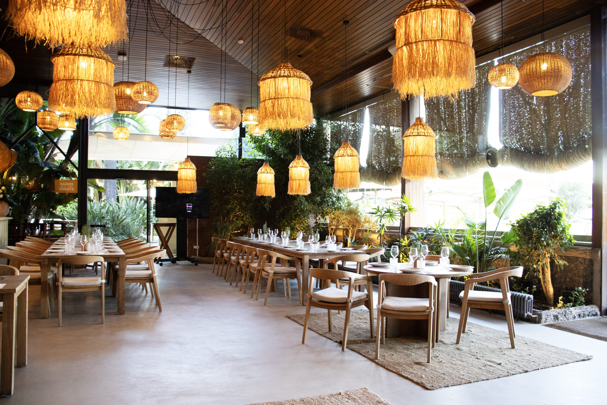 On the terrace of Beso Beach Pedralbes, the lamps created by Decorluc with natural materials play a crucial role. These luminaires not only provide illumination but also beautify the surroundings, adding a warm and elegant atmosphere. Each lamp has been carefully designed and adapted to the style of the outdoor space, achieving a contemporary sophistication that perfectly integrates with the restaurant’s natural and exclusive environment.