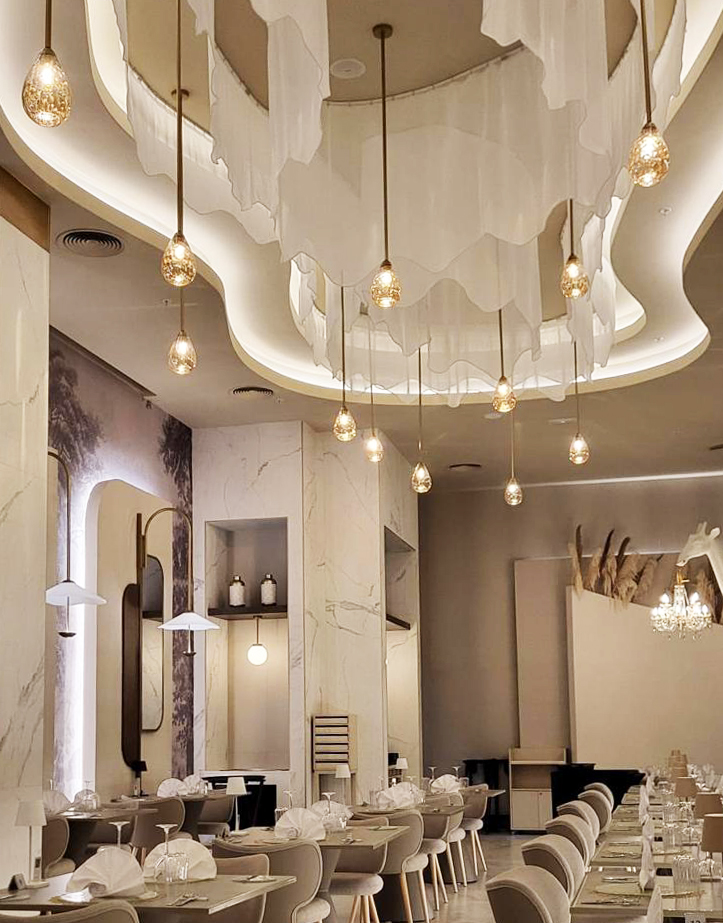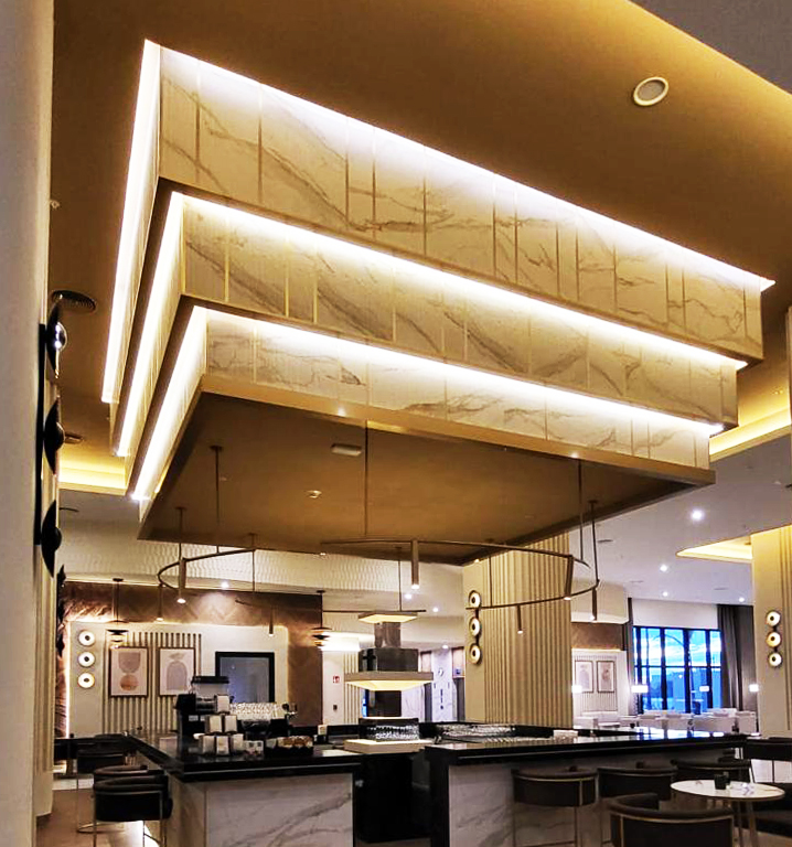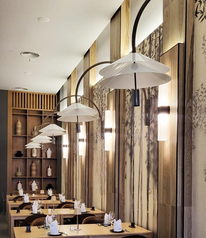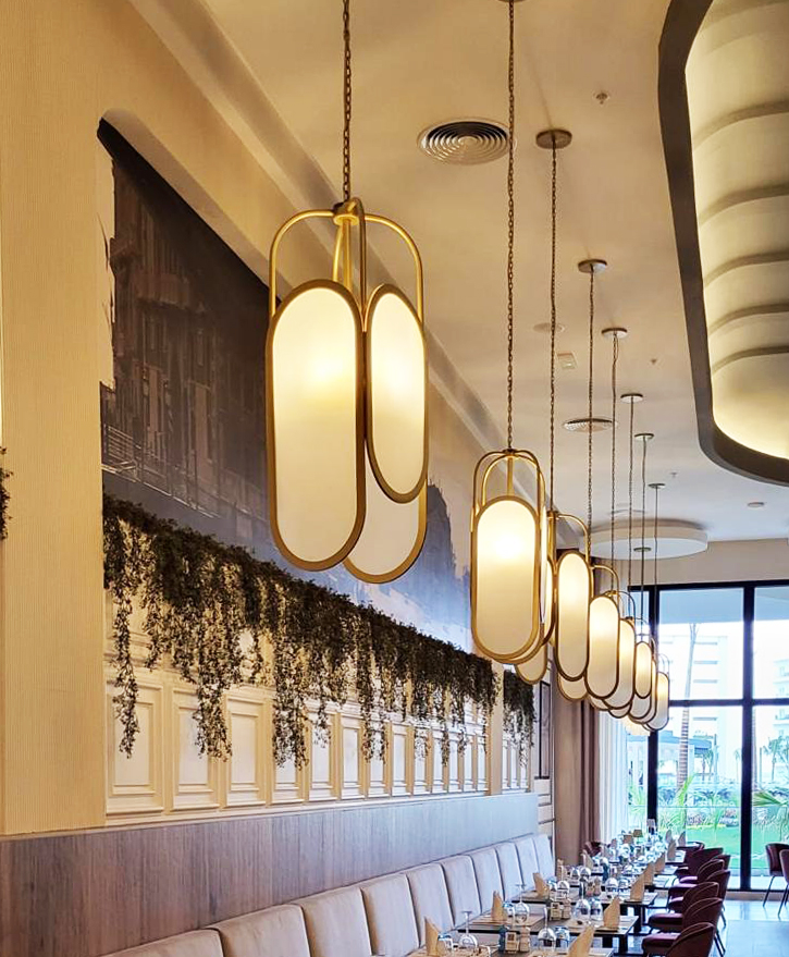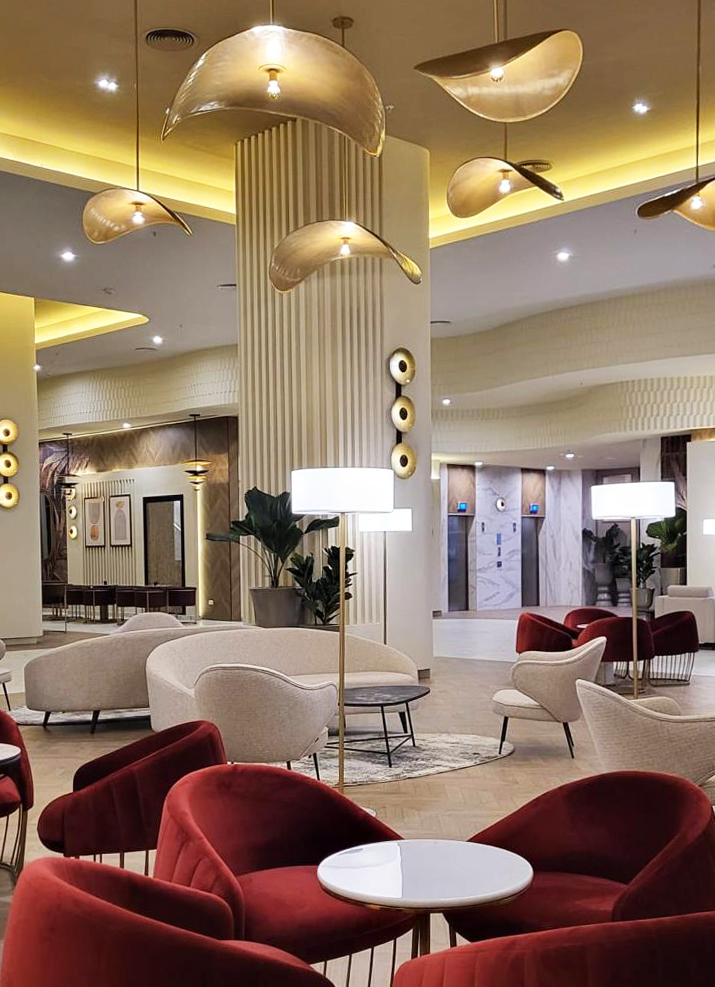 In the common areas of Riu Aquerelle, the lamps created by Decorluc, using a variety of styles and materials, play an essential role. These luminaires not only provide illumination but also blend perfectly with the surroundings, creating a warm and sophisticated ambiance. Each lamp has been meticulously designed to harmonize with the style and aesthetics of each common area, achieving contemporary elegance that seamlessly integrates with the hotel’s decor, with every detail meticulously attended to.