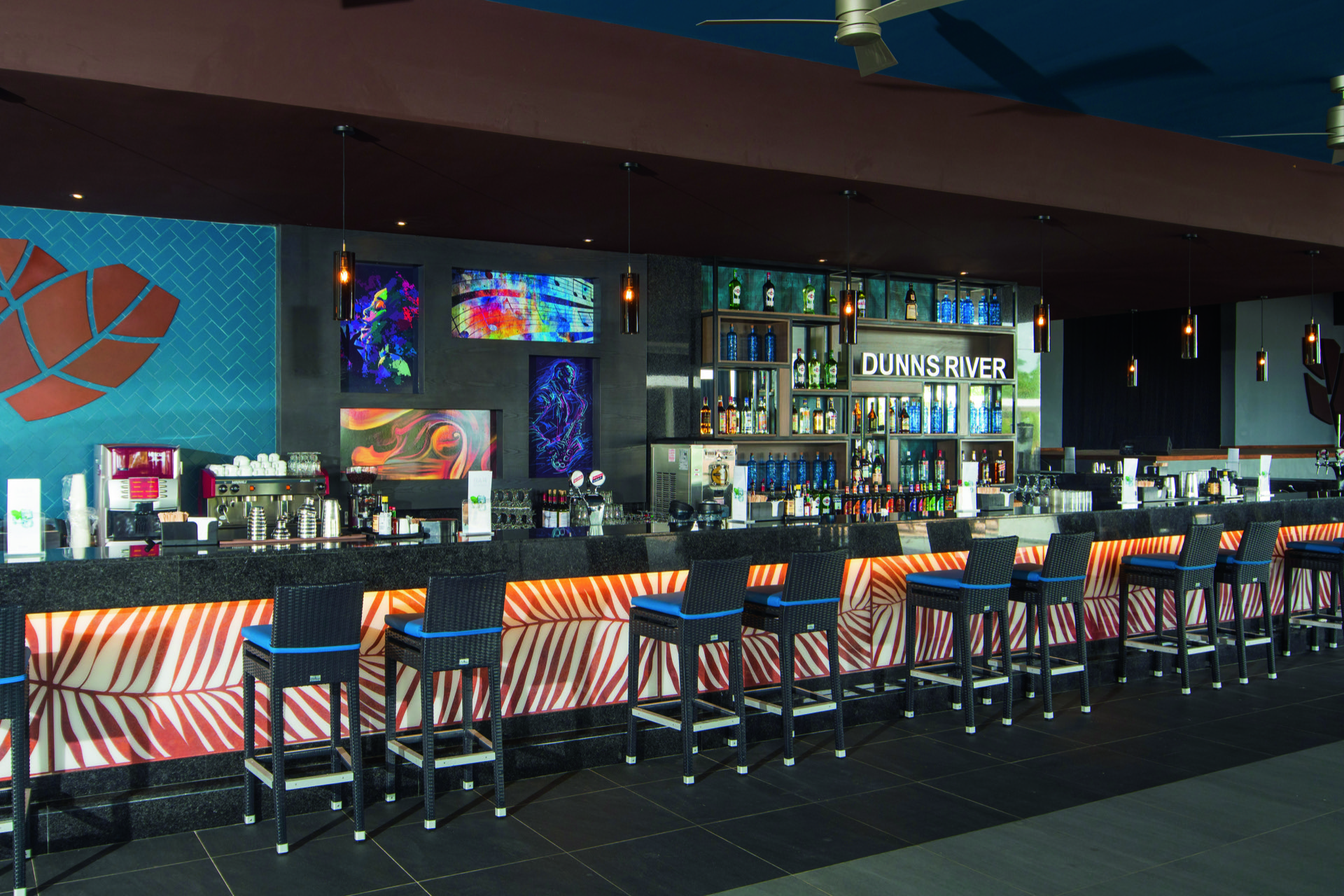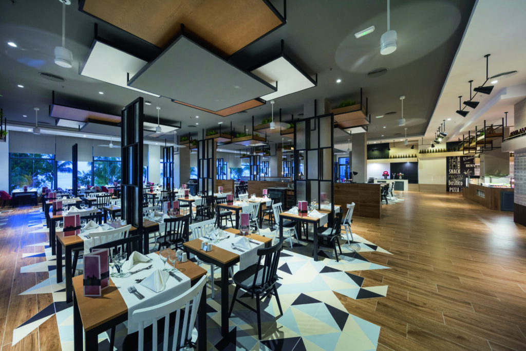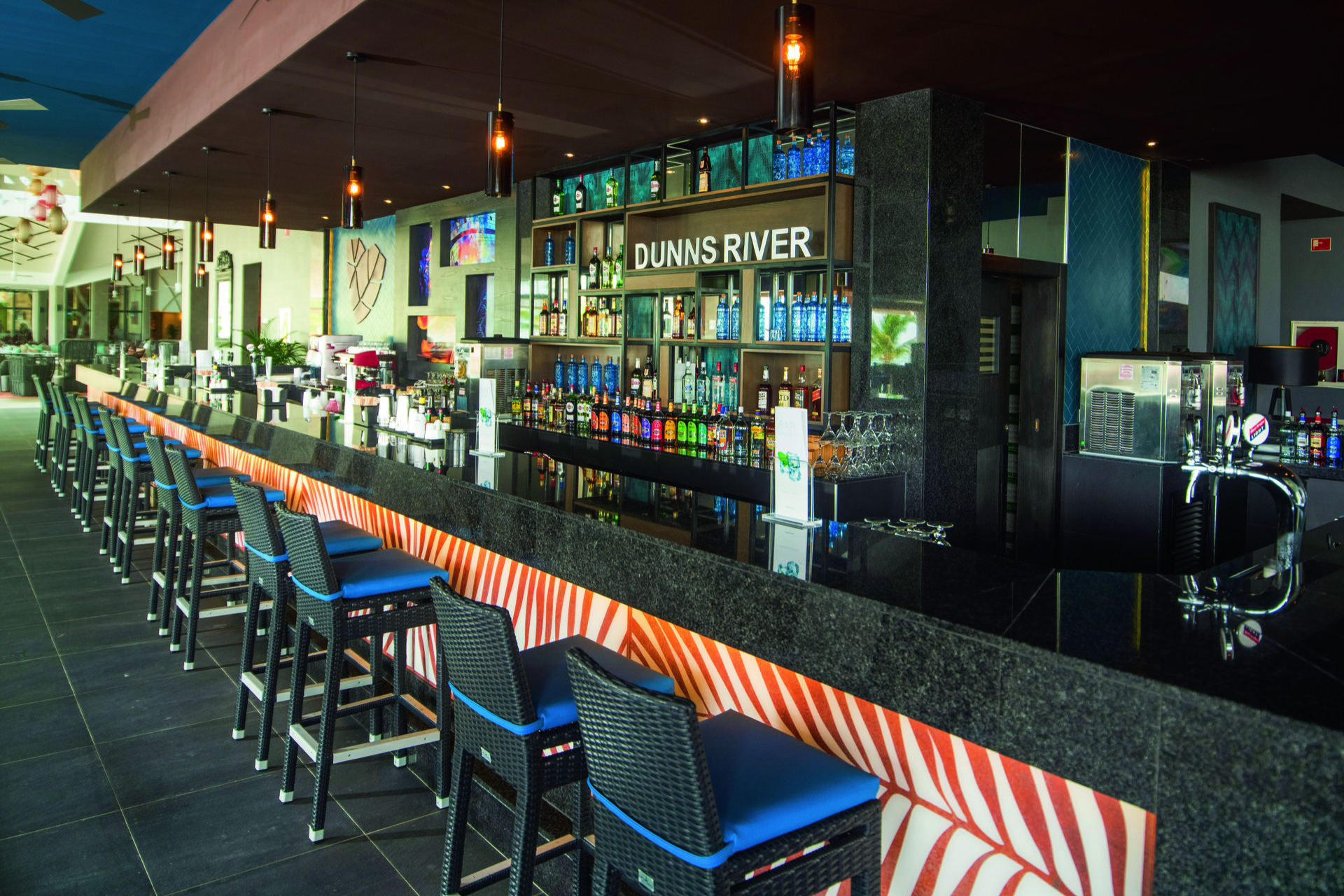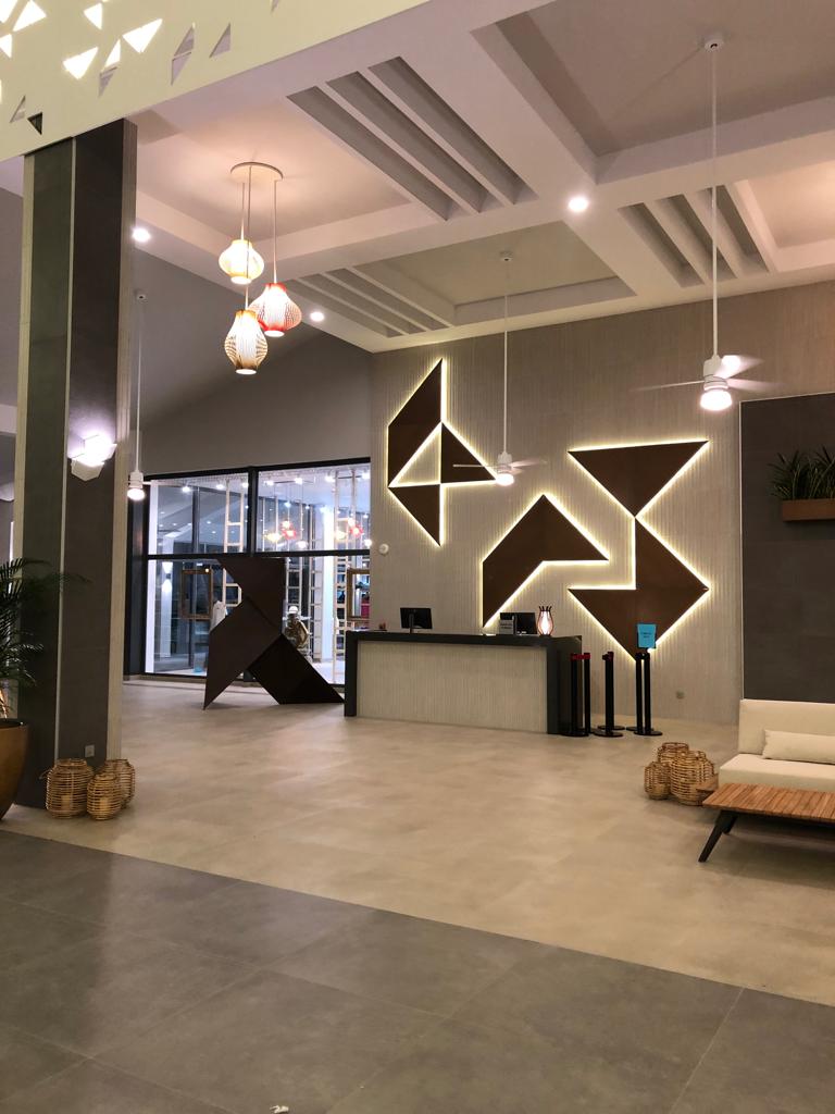 En el norte de Jamaica, inmerso en la naturaleza más salvaje de la isla, el Hotel Riu Ocho Rios se alza, contrastando sus diseños geométricos y espacios angulosos con las montañas, playas paradisíacas y arrecifes más espléndidos del Caribe. Un espacio en el que, con nuestros diseñadores, hemos querido combinar todos los materiales más nobles, trabajados de la manera más tradicional, para crear luminarias que se adaptan a los techos, paredes, estancias, salones y restaurantes para acompañar a los huéspedes en esta explosión de colores y formas redescubiertas.