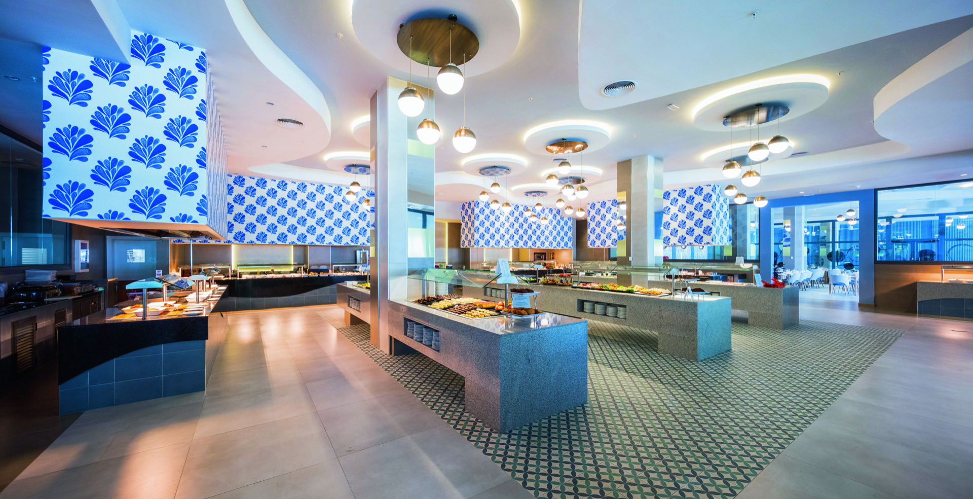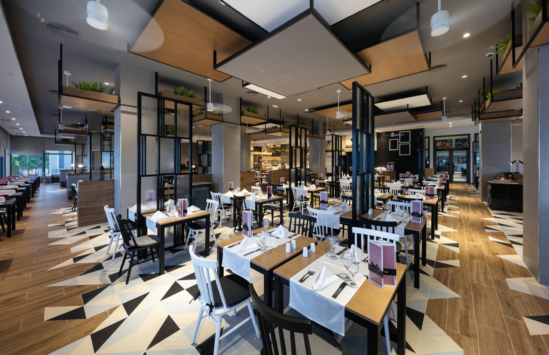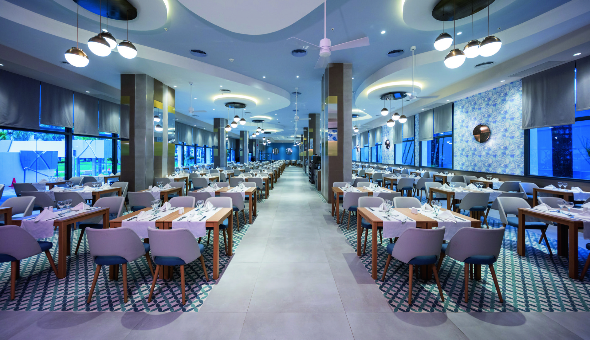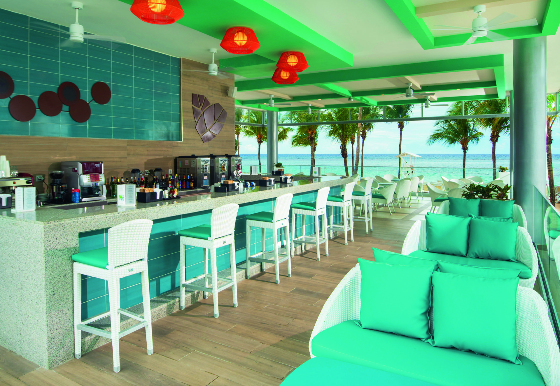 En el norte de Jamaica, inmerso en la naturaleza más salvaje de la isla, el Hotel Riu Ocho Rios se alza, contrastando sus diseños geométricos y espacios angulosos con las montañas, playas paradisíacas y arrecifes más espléndidos del Caribe. Un espacio en el que, con nuestros diseñadores, hemos querido combinar todos los materiales más nobles, trabajados de la manera más tradicional, para crear luminarias que se adaptan a los techos, paredes, estancias, salones y restaurantes para acompañar a los huéspedes en esta explosión de colores y formas redescubiertas.