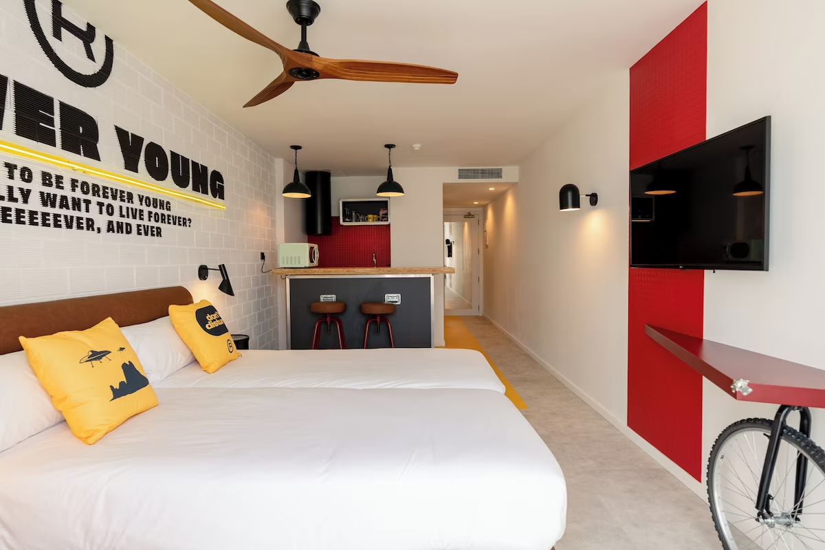 Experimenta lo mejor de Ibiza en el hotel Ryans Lola’s, del grupo OD, estratégicamente ubicado en el corazón de la isla. Sus modernas habitaciones y espacios comunes se iluminan con lámparas inspiradas en los efectos lumínicos del neón, creando un ambiente vibrante y contemporáneo. Una fusión de estilos que evoca una modernidad elegante y cómoda para disfrutar del mediterráneo.