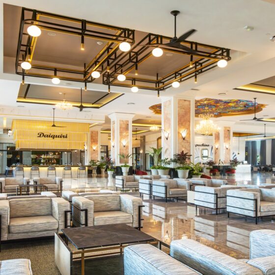 Este auténtico ejercicio de arquitectura e interiorismo eleva el alojamiento para que los visitantes puedan disfrutar de una experiencia única. El estudio Decorluc ha sido el encargado de diseñar lámparas a medida y hechas a mano, utilizando una variedad de materiales y formas para iluminar todos los espacios comunes del hotel. Descubre la renovación del Riu Palace Pacífico y sumérgete en el atractivo de la iluminación exclusiva, un testimonio de la perfecta fusión entre la artesanía y la funcionalidad, cuidadosamente seleccionada por Decorluc.